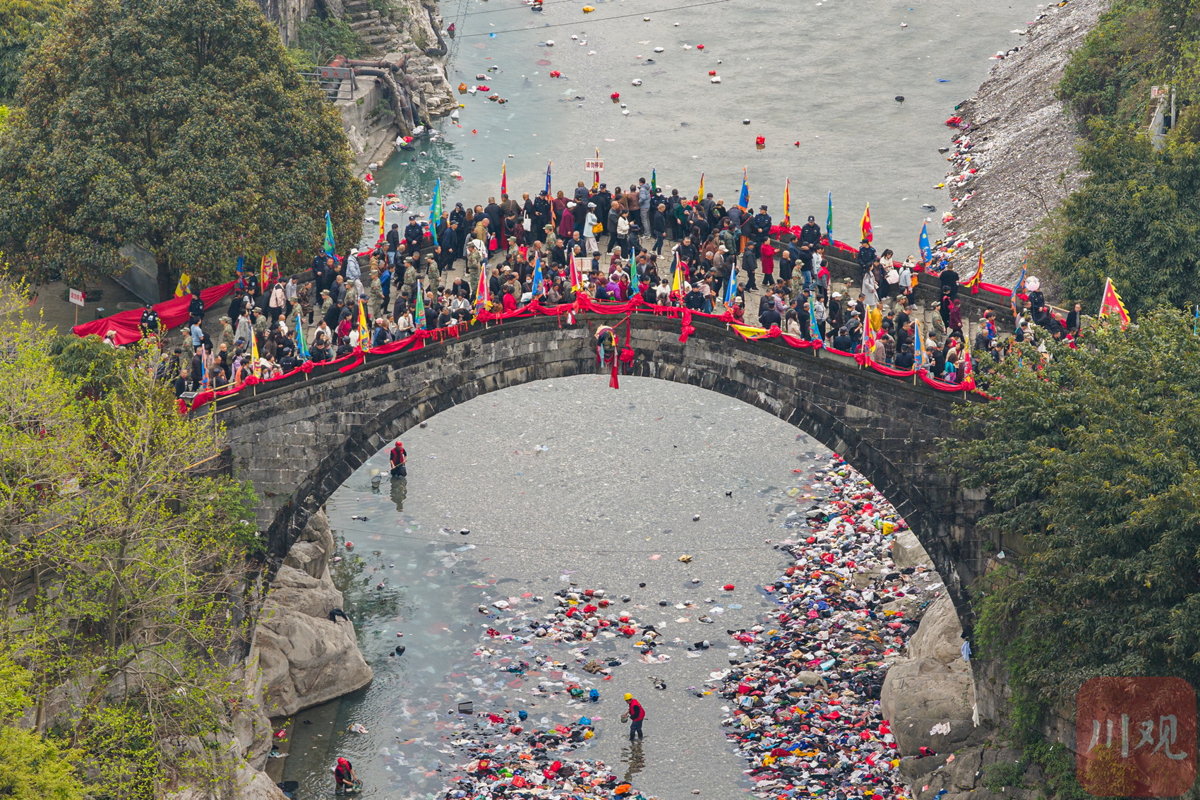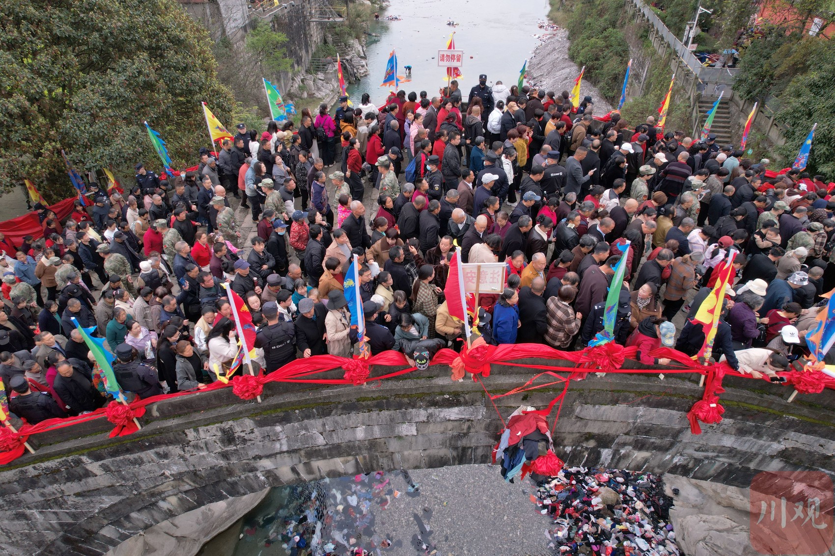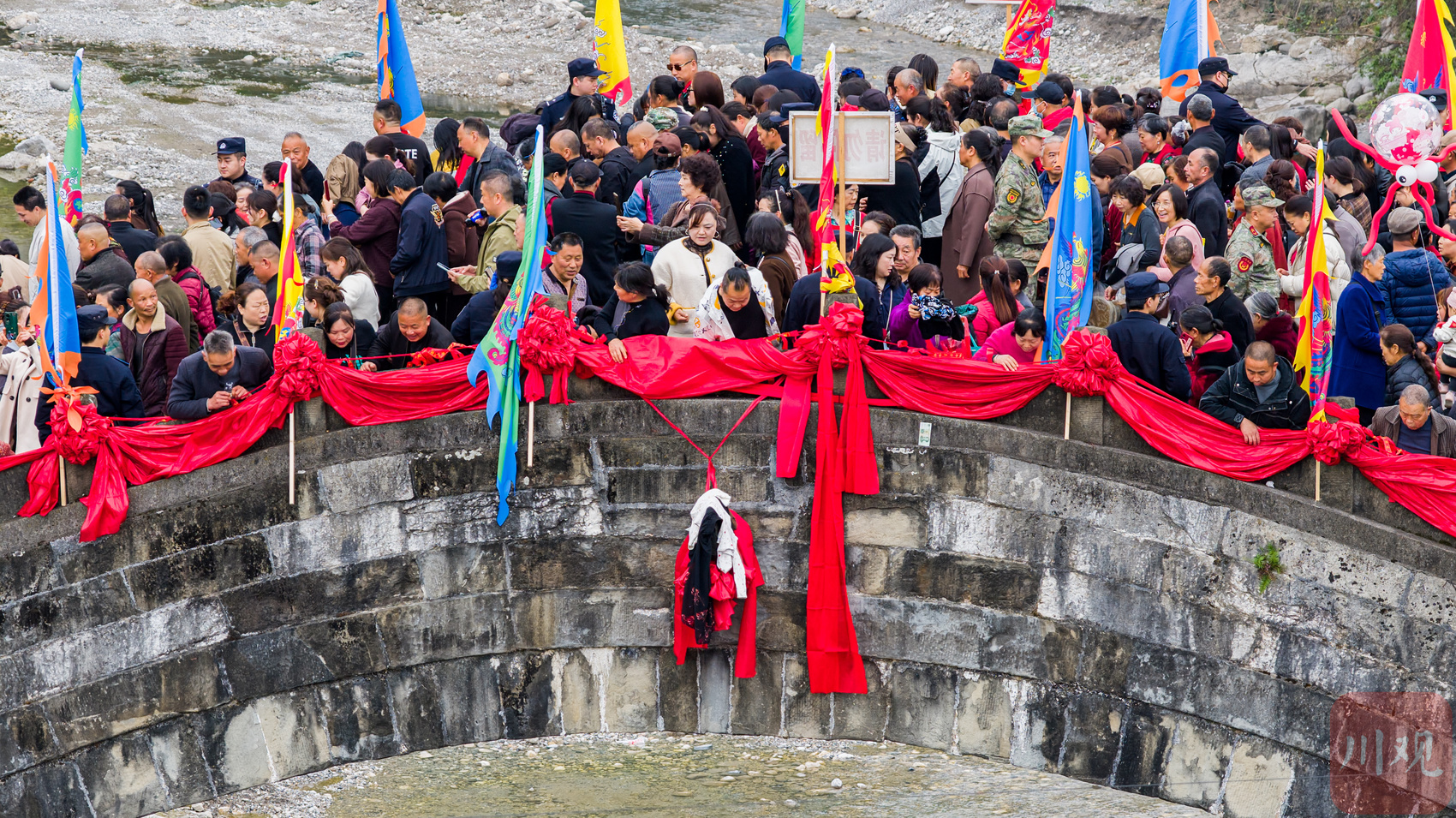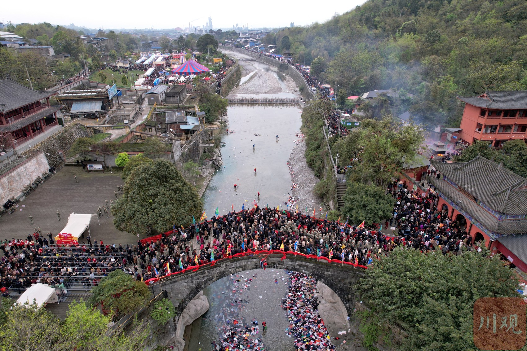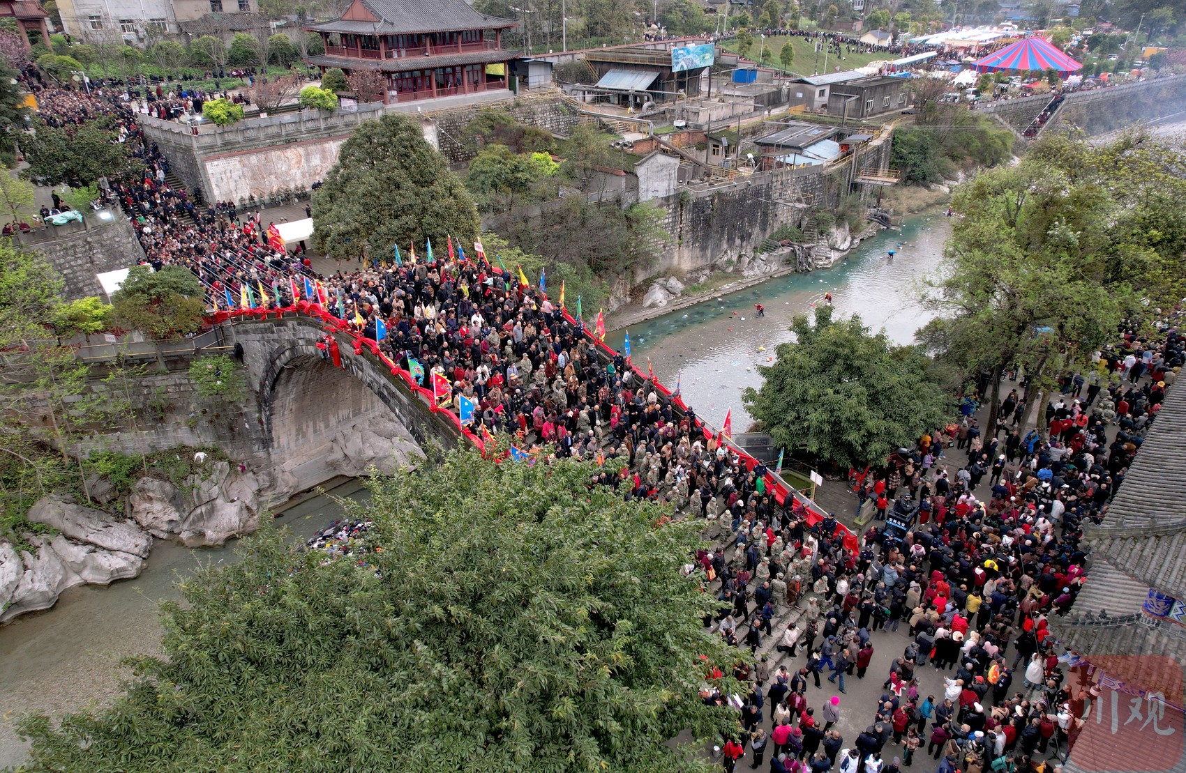 太平桥迎来众多群众踏桥祈福,再现川西现代版“清明上河图”景象。
