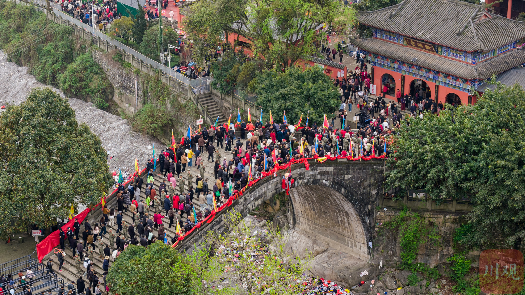 2026年3月25日,“中国春社·雎水踩桥”在绵阳市安州区雎水镇举行。