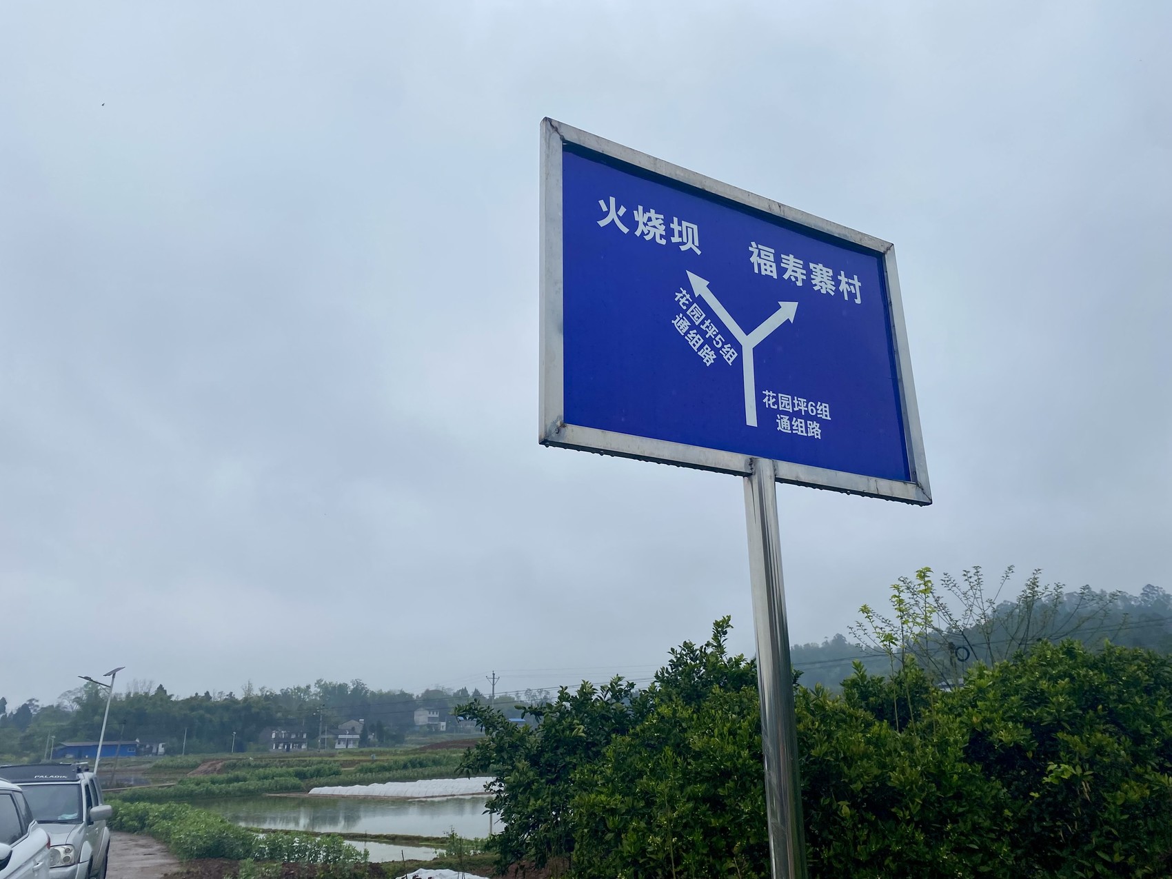 乡村公路上的路名标志牌。(彭娟 摄)