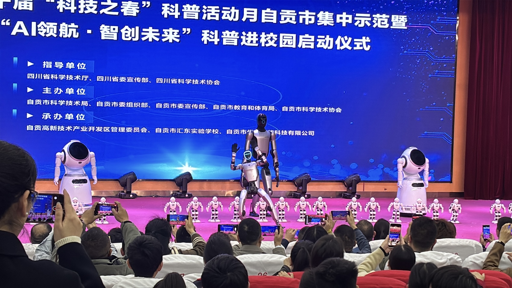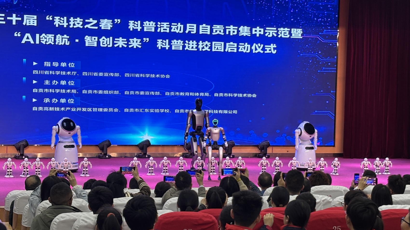 3 月 23 日,自贡市第三十届 “科技之春” 科普活动月集中示范暨 “AI 领航 智创未来” 科普进校园启动仪式在汇东实验学校启幕,一场以人工智能为核心的科普盛宴,让盐都青少年近距离触摸前沿科技魅力,在心底种下科学探索的种子。
