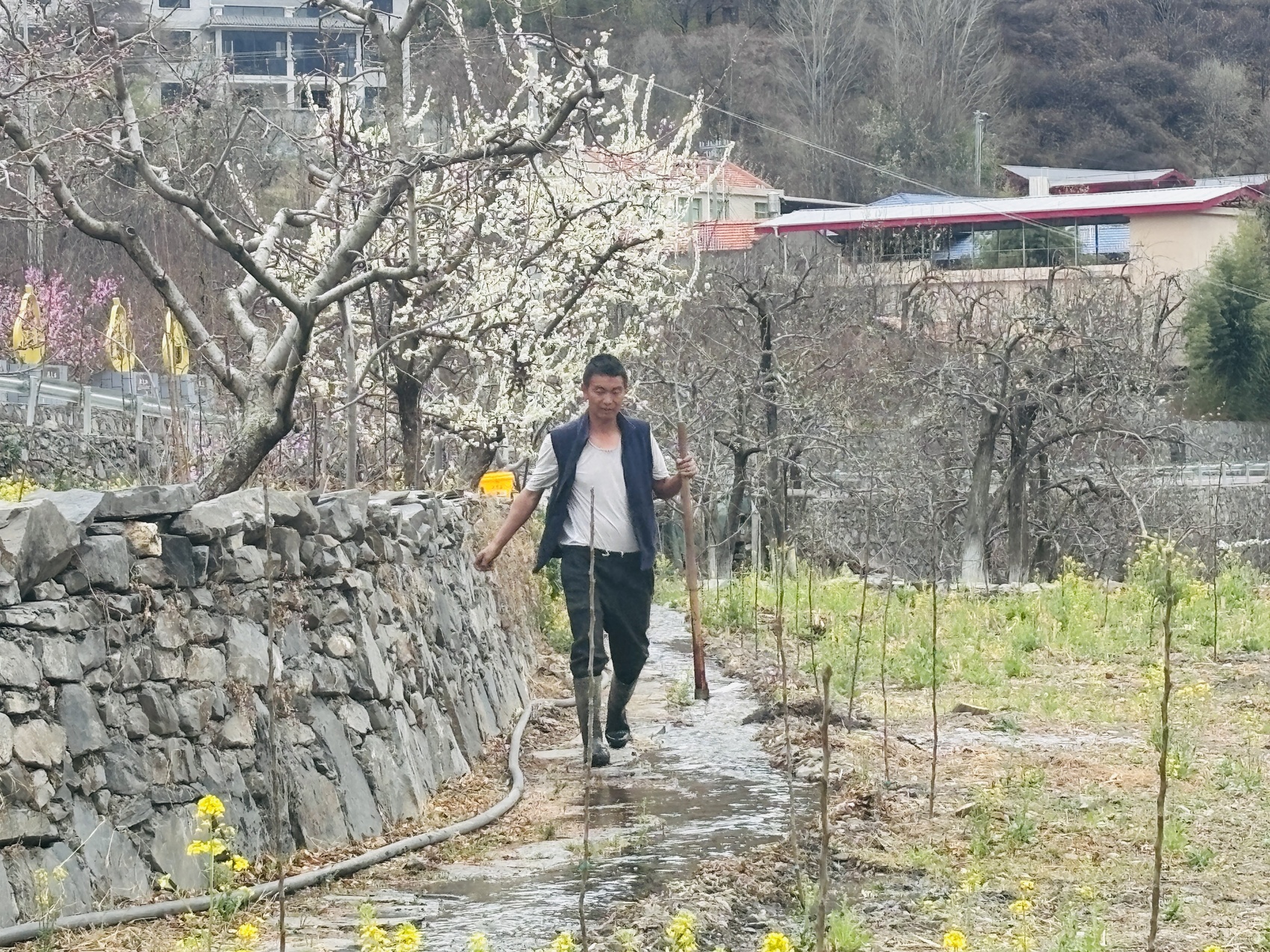 最近一段时间,金川县沙耳乡山埂子村赵家梨园里的五六百株梨树花朵渐次绽放。梨园负责人赵明安、何九妹与工人一道,忙着独栋住宿房间的厨房装修事宜,为游客的到来做准备。