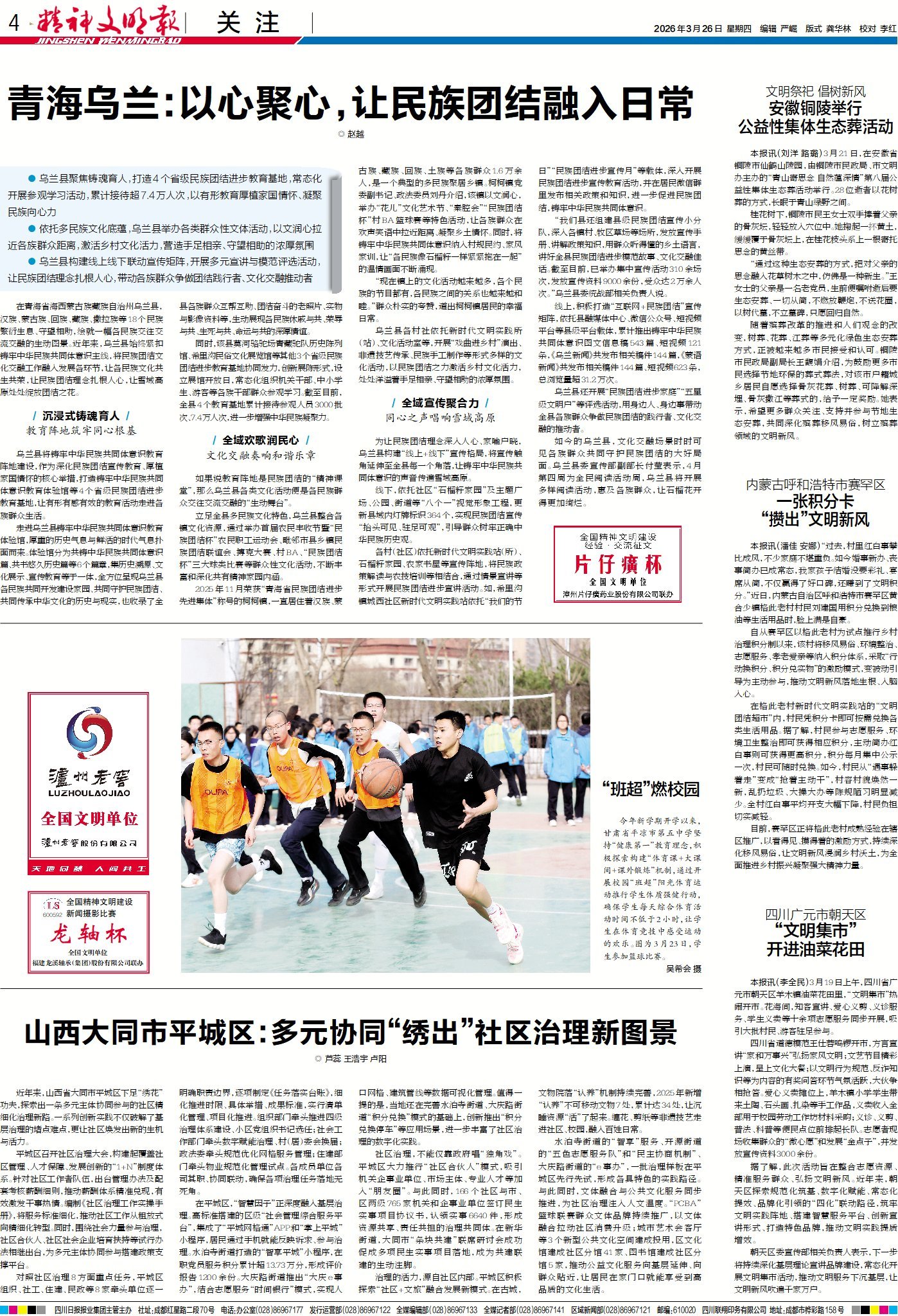 近年来,青海省海西州乌兰县始终以铸牢中华民族共同体意识为核心,深耕民族团结工作。通过建设教育体验馆等阵地,常态化开展教育活动;依托多民族文化特色,举办各类群众性文化体育活动,拉近各族群众距离;线上线下联动宣传,解读政策、讲述团结故事,让民族团结理念家喻户晓。来4版“关注”,带你走进乌兰县,见证各族群众同心同德、互帮互助、携手同行的动人场景,品读他们共同书写的各民族共生共荣、和谐发展的美好篇章。