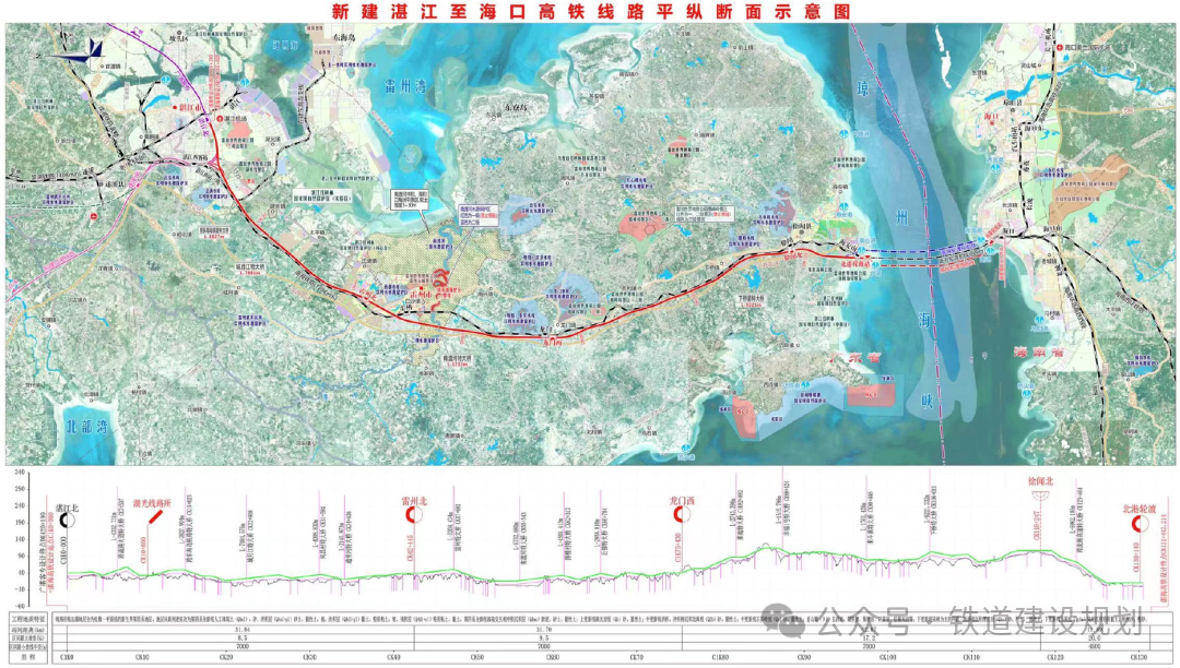 据悉,湛海高铁项目位于我国大陆南端的雷州半岛和海南岛之间,线路北起湛江市湛江北站,连接合湛高铁、茂湛铁路、广湛高铁,向南经雷州、徐闻至海口,以铁路轮渡通过琼州海峡与海南环岛高铁和西环铁路相连,是全国高速铁路网“八纵八横”之包(银)海通道的组成部分,也是沿海高速铁路通道及广东省规划沿海高速铁路通道重要构成。