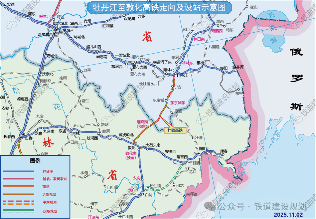 牡敦高铁于2020年启动了预可研等前期工作,在2023年正式列入了国铁集团勘察设计计划,并于2025年7月通过国铁集团的可研审查,进入可研鉴修、现场定测及初步设计阶段。