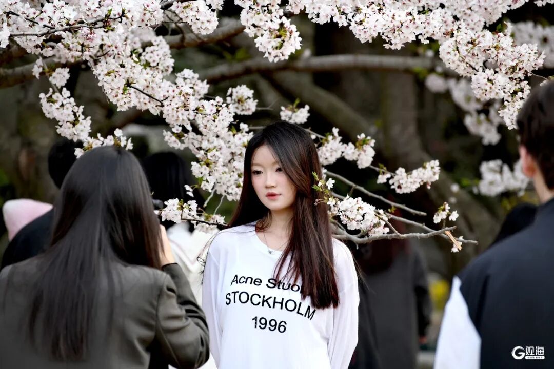 因此,今年清明节期间,市民到中山公园踏青,适逢单樱“始花期”。花开时间较去年偏晚,但比常年提早约一周。