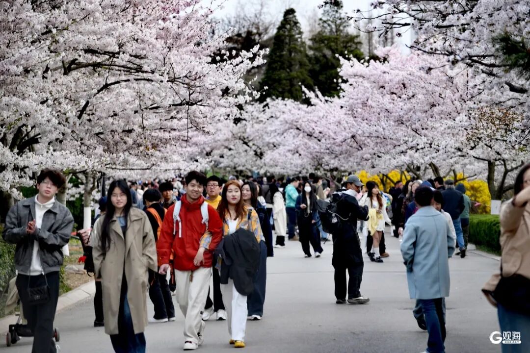 侯鲁文预测,4月3日起,中山公园生长势强的零星单樱,会在枝头“迫不及待”绽放。往后随气温升高,樱花大道北部的樱花因地势较高,光照条件更好,将首先绽放。到4月5日、6日两天,樱花大道两侧的樱花会集中进入“始花期”。