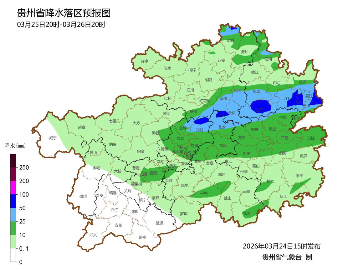 此外,记者从贵阳市气象台获悉,今天(3月25日)午后到夜间,贵阳市中北部将出现冰雹、雷电等强对流天气。