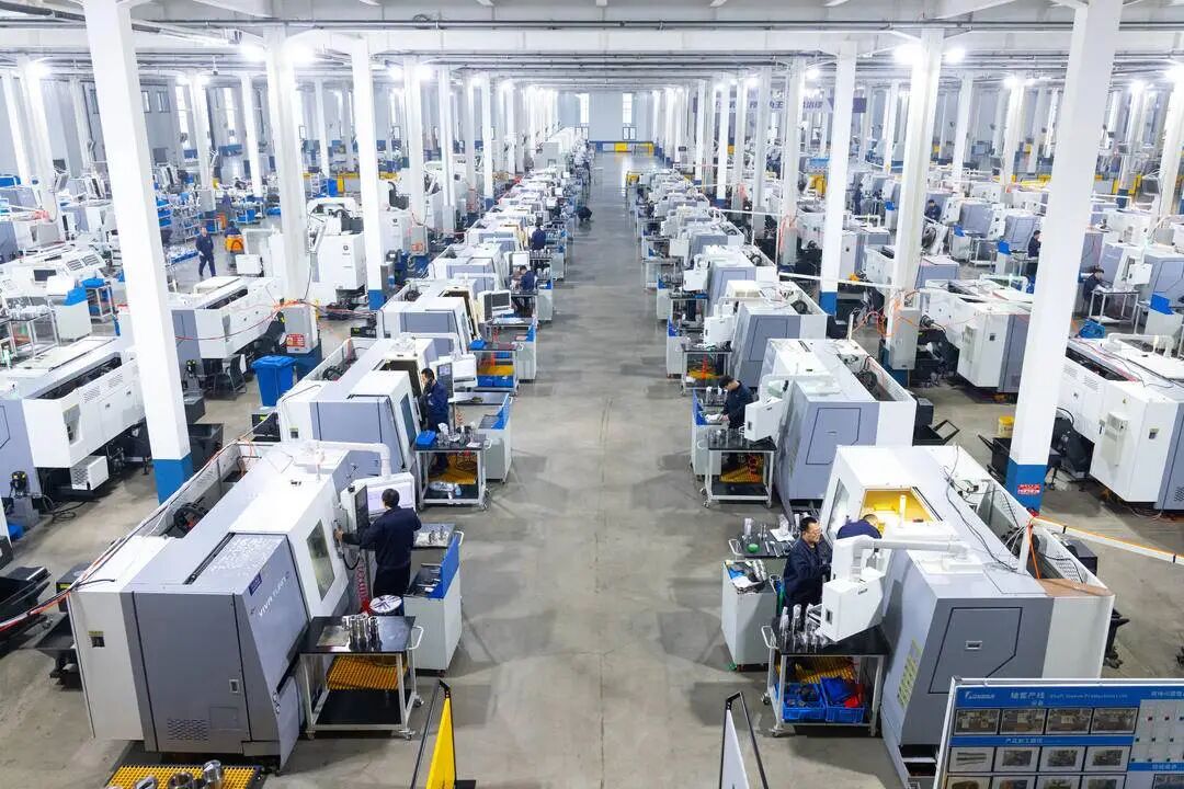 进入轴套制造车间,整齐排列的近400台智能化机床高速运转。智能监控屏上,主轴转速、坐标轨迹等核心参数闪烁更新,依托云端算力,生产数据每5秒采集一次并上传处理。