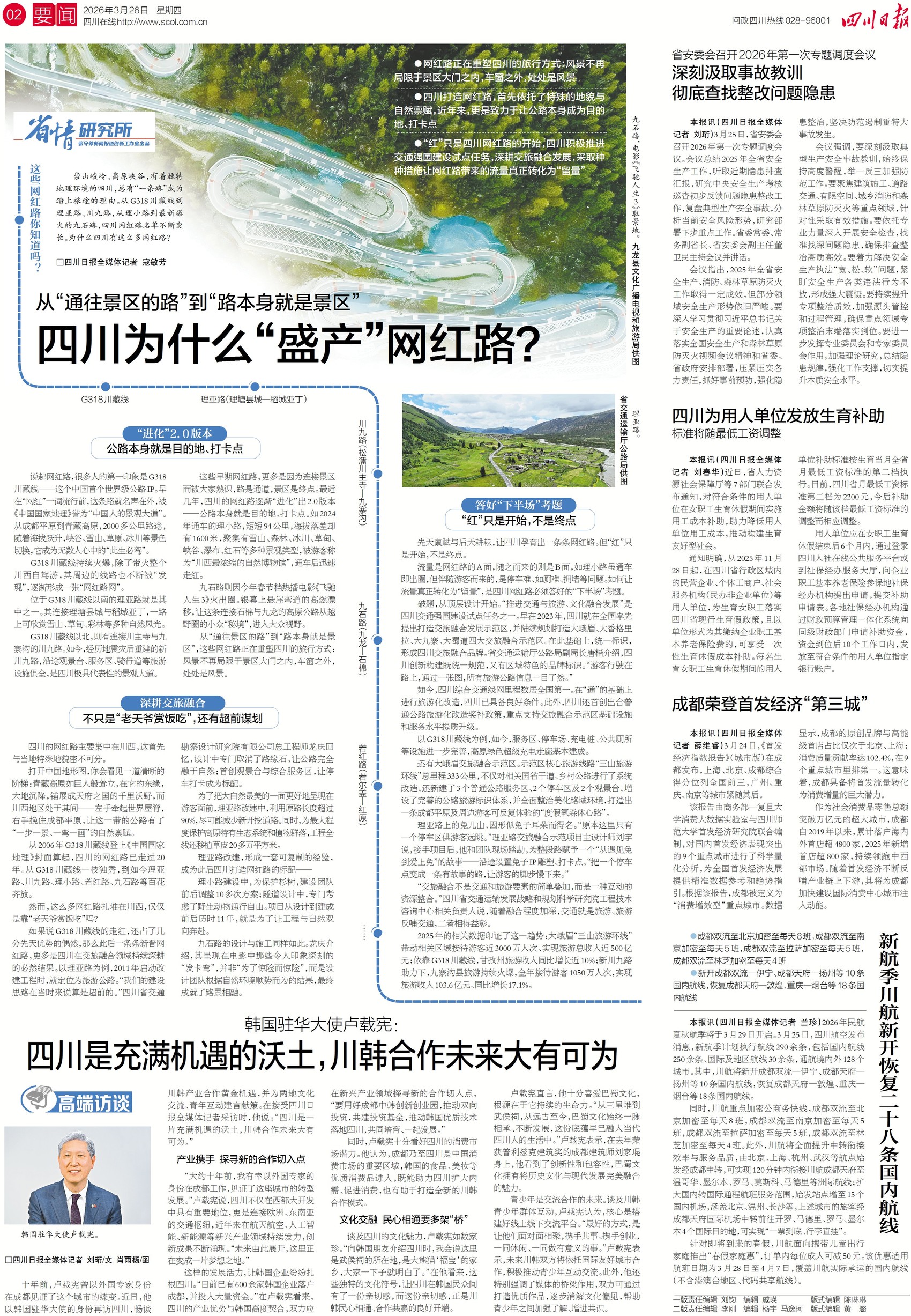 说起网红路,你的第一印象是不是G318川藏线,这条无数人心中的“此生必驾”线路。在四川,不只有G318川藏线,还有理亚路、川九路、理小路,以及被今年春节档电影《飞驰人生3》带火的九石路等网红路。它们正在重塑四川的旅行方式,让风景不再局限于景区大门之内,车窗之外处处是风景。那么,四川为何“盛产”网红路?答案就在今天二版。