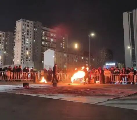 记者注意到,新辰天地潍坊店官方微信在3月20日曾发布推文称,3月20日至29日,将于门外广场举办庙会及民俗表演活动,其中一张宣传配图即为上述火壶表演。