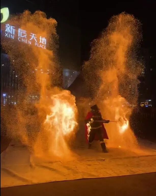 极目新闻记者核实了解到,这是3月24日晚发生的一幕,事发地位于潍坊市奎文区新辰天地购物中心广场上。社交平台上,多位网友称目睹了起火过程,表演者随后被送医。