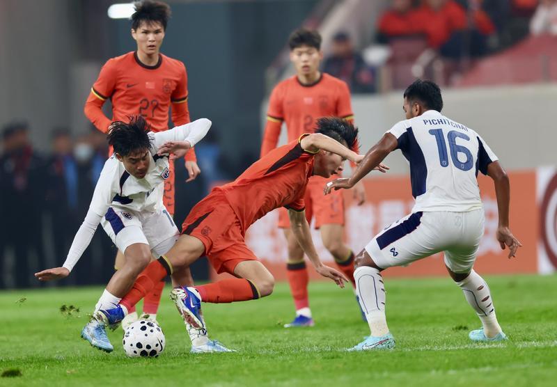 中国U23男足在先失两球的情况下以2-2战平泰国U23男足。