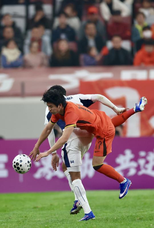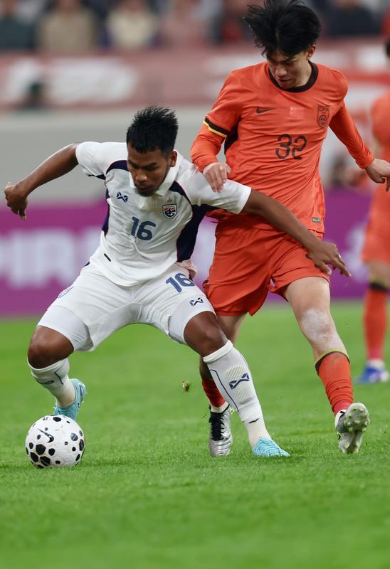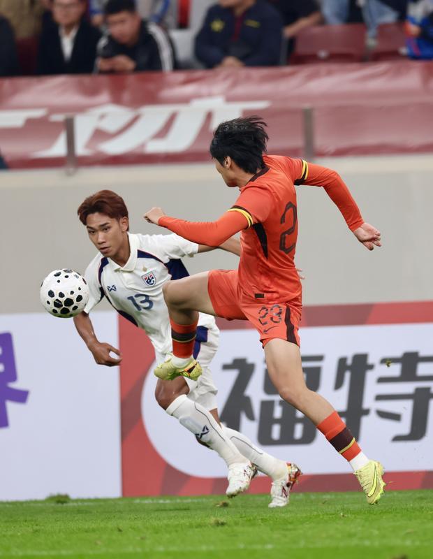 中国U23男足与泰国U23男足中场争抢。
