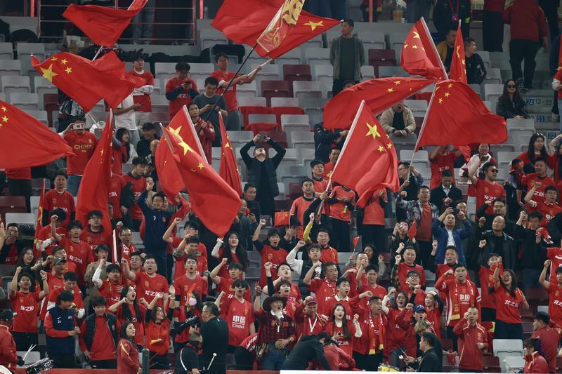 中国球迷为中国U23男足与泰国U23男足的精彩比赛助威。
