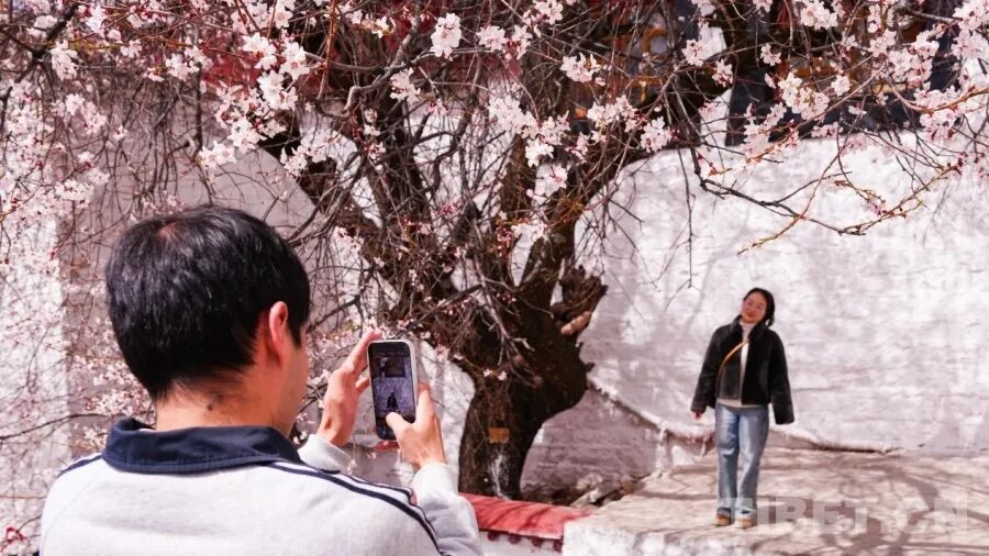帕邦喀寺盛开的桃花吸引游客打卡拍照 摄影:赵振宇
