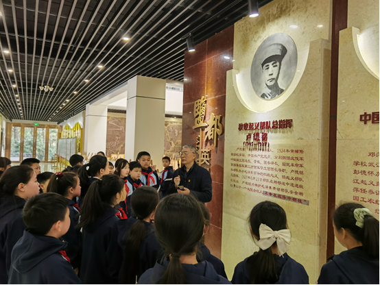 随后,军休干部与孩子们一同走进自贡市革命烈士陈列馆。“军休宣讲团”成员肖建海化身“红色讲解员”,深情讲述从自贡走出的红军高级将领邓萍的英勇无畏的一生。“今年是中国工农红军长征胜利90周年。”他讲述着,“邓萍烈士在遵义战役中壮烈牺牲,年仅27岁,他用生命践行了‘革命理想高于天’的铮铮誓言。”孩子们一边聆听,一边认真记录,不时提问:“爷爷,那时候他们怕不怕?”“怕,但信仰让他们无所畏惧。”肖建海的回答深深烙印在了孩子们的心中。