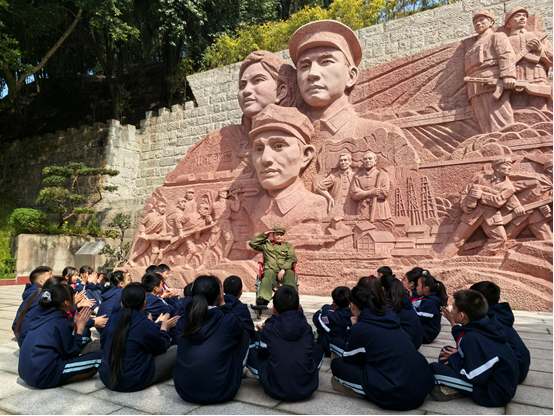 在“英雄故里 红色自贡群雕”前,四级伤残军人龚清德用铿锵有力的话语和饱含深情地讲述,将现场的少先队员们带回到那段硝烟弥漫、烽火连天的峥嵘岁月。孩子们围坐在他身边,屏息凝神,眼中闪烁着崇敬与感动的泪光。