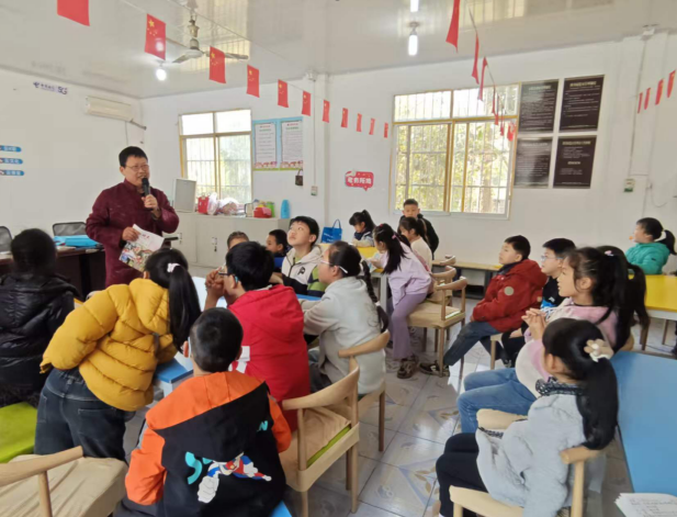 (文/关爱明天全媒体记者 李尚凝 通讯员 蒋梅 徐显龙)为认真贯彻落实第十四届全国人民代表大会第四次会议审议通过的《中华人民共和国国民经济和社会发展第十五个五年规划纲要》关于“强化未成年人关爱保护”的重要部署,帮助农村留守儿童及家长进一步弄清楚、搞明白读书的目的、意义,促进困境儿童、流动儿童、留守儿童健康成长。3月21日,乐山市市中区关工委亚灵心理健康关受工作室主任徐亚灵,应邀走进井研县王村镇磨池街社区爱心驿站,为爱心驿站的50名留守儿童及家长作了题为 “孩子,我们为什么要读书”的心理辅导讲座。