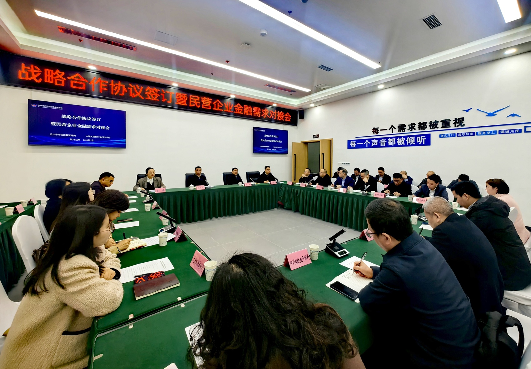 3月26日,达州市市场监督管理局与中国人民银行达州市分行在达州市“万市兴”综合服务平台签署合作备忘录,同步举行“政银携手·助企发展”民营企业融资对接会。当天,14家金融机构代表、24家民营企业代表参会。