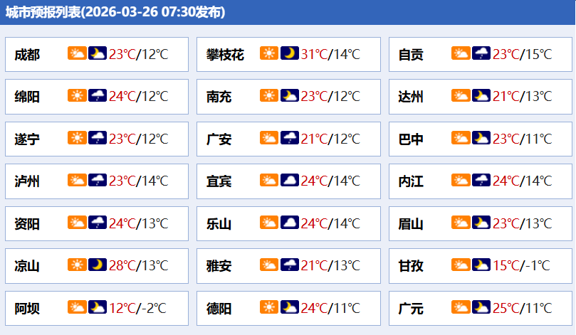 大家好!今天3月26日,星期四,欢迎进入早读四川!每天2分钟,让你更懂四川。