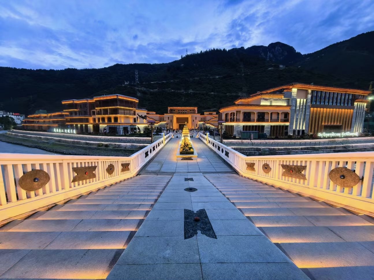 白玉县河坡民族手工艺文旅融合示范园区夜景。(白玉县文旅局供图)