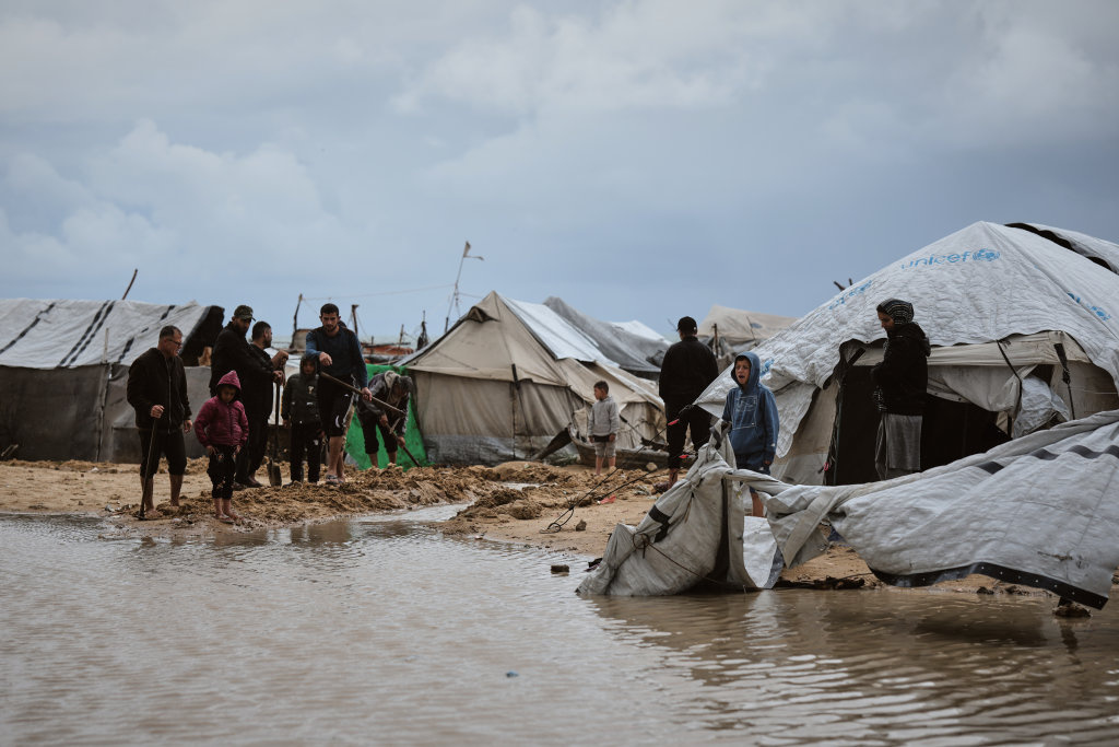 近日,加沙地带遭遇降雨,使流离失所的巴勒斯坦民众生活更加艰难。