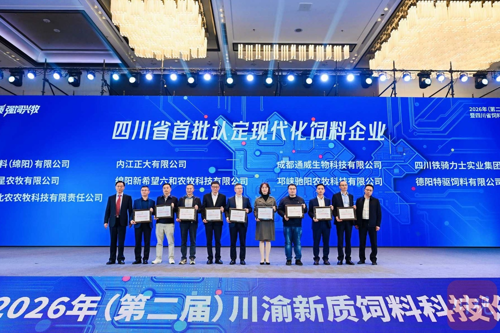 3月26日,正大饲料(绵阳)有限公司有了一个新标签:首批四川省现代化饲料企业。当天,2026年(第二届)川渝新质饲料科技论坛暨四川省饲料行业年会在成都市举行,活动首次评选出了正大饲料(绵阳)有限公司等9家四川省现代化饲料企业。四川省饲料工业协会会长陈代文告诉记者,这些企业是从全省600多家饲料企业中筛选出来的,在降本增效、数智化转型等方面具有重要的引领作用。