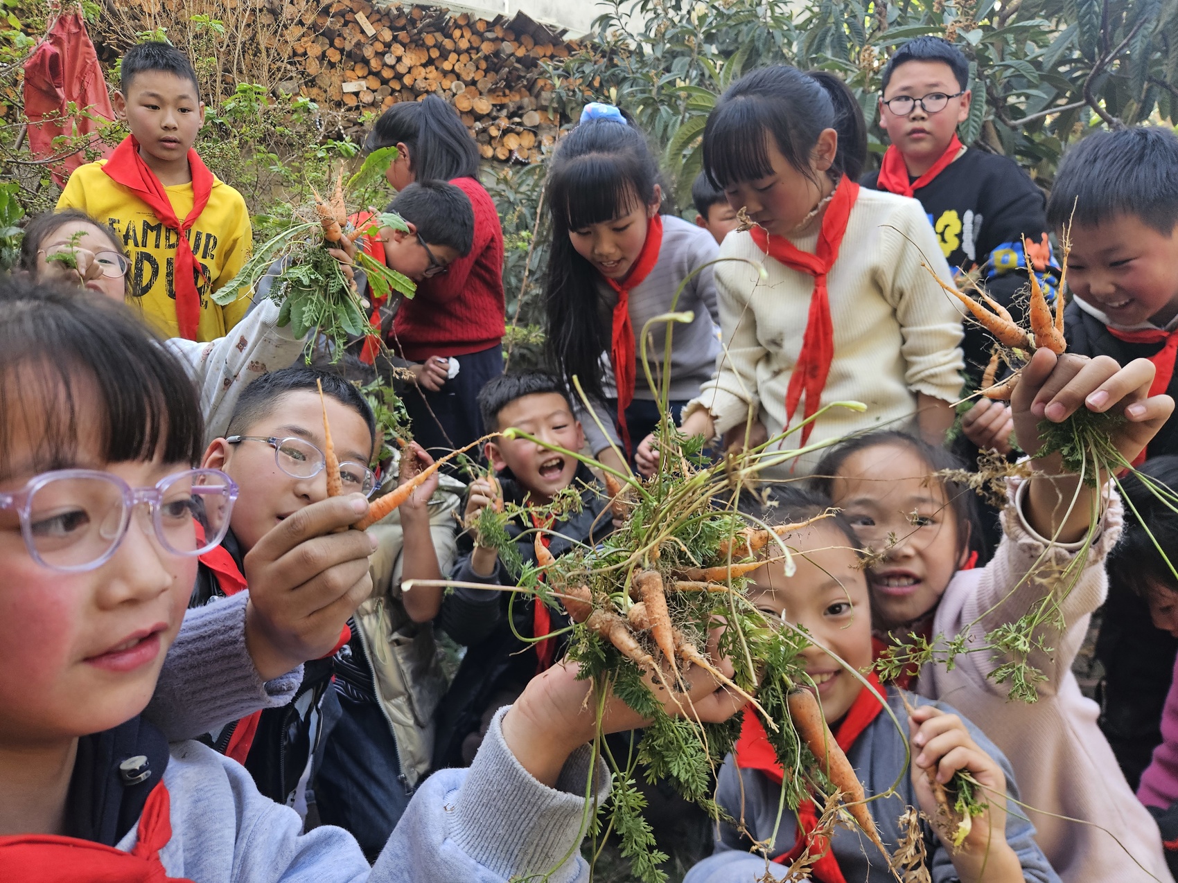 汪芳龙与高年级同学进行劳动实践活动