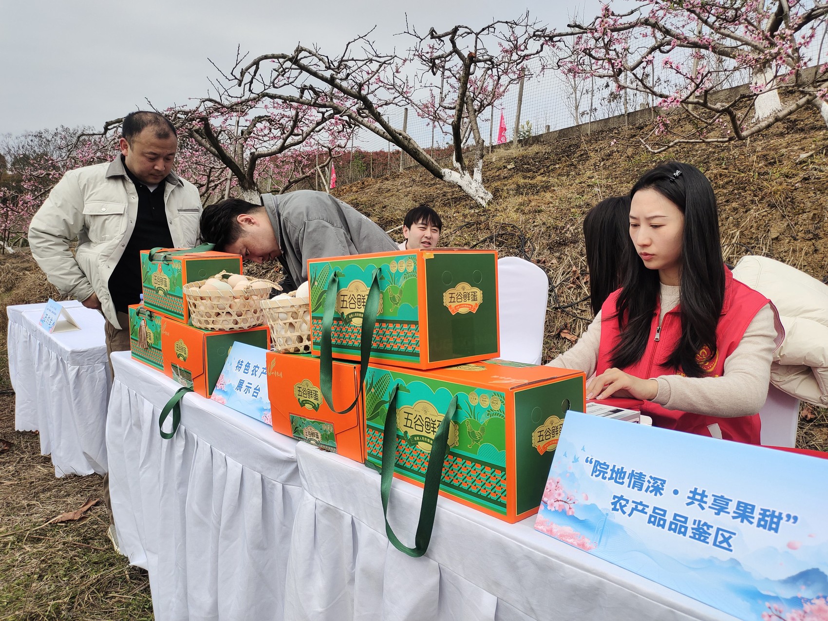 桃林互动体验区还设置了AI对弈等新潮体验,趣味十足;农产品展销区土鸡蛋、时令果蔬、优质柑橘等本土特产热销不断。线上朋友圈集赞送非遗剪纸、文创礼品等活动持续引流,有效提升活动传播力与参与度。桃花缘相亲会精准服务单身青年,专业红娘现场牵线搭桥,搭建温馨交友平台,获得群众广泛好评。