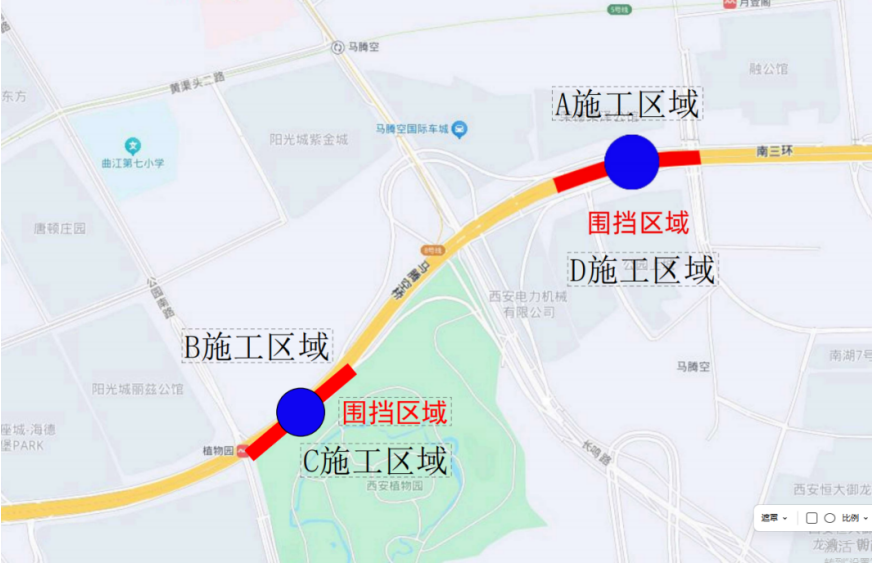 西安东站高架快速路及节点立交工程南三环(田马路—公园南路段)拼宽施工将于近期实施,并对相关路段交通组织进行临时调整,现将施工期间交通管理工作通告如下: