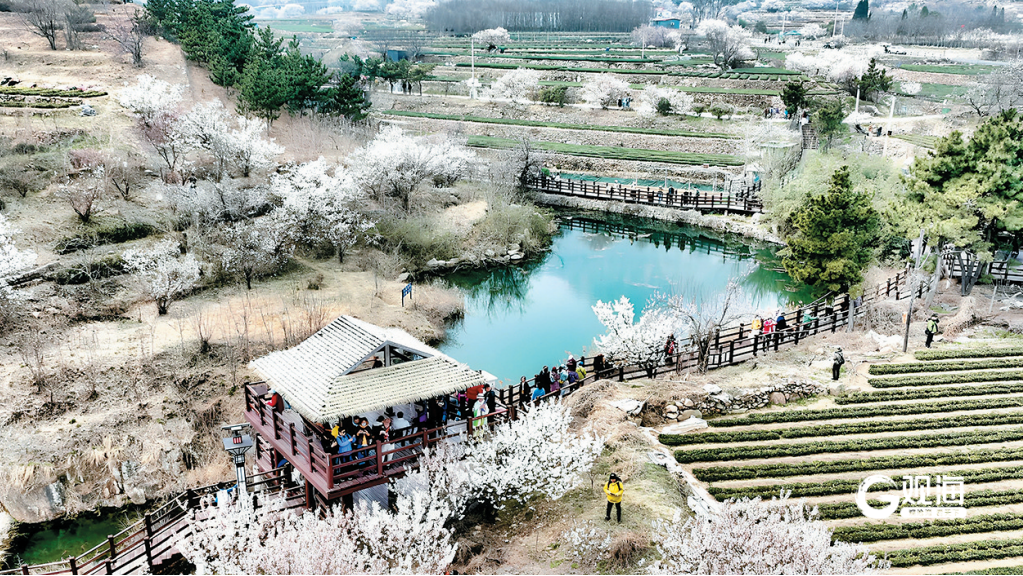 崂山区王哥庄街道庙石村的樱桃花迎来最佳观赏期,层层叠叠,如雪似雾,吸引了众多市民游客前来踏春赏花。 王雷 摄