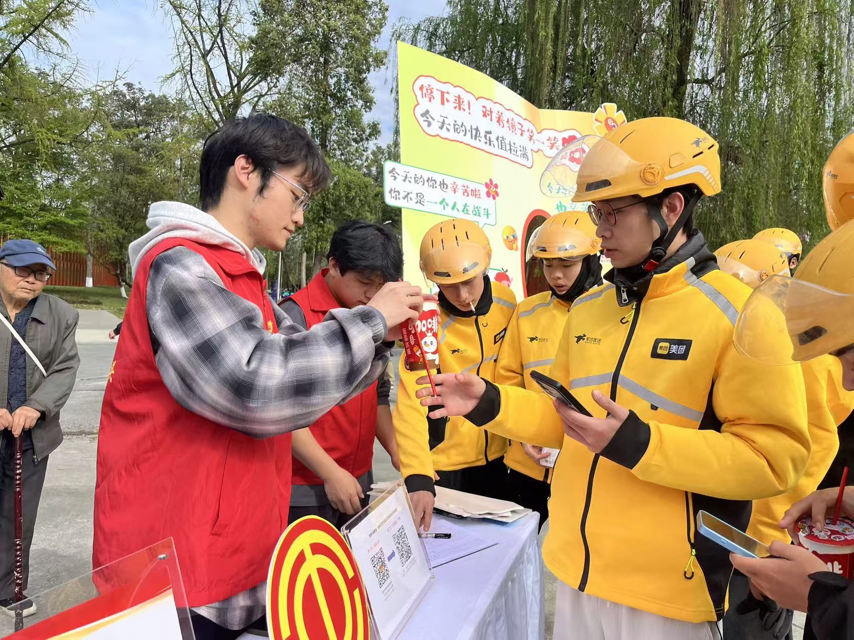 3月26日,成都市郫都区一里桥社区的暖心驿站里,一场针对外卖骑手的关爱活动有了新内涵:这里不仅有暖心的咖啡,更有生命安全知识讲解与车辆检修服务。