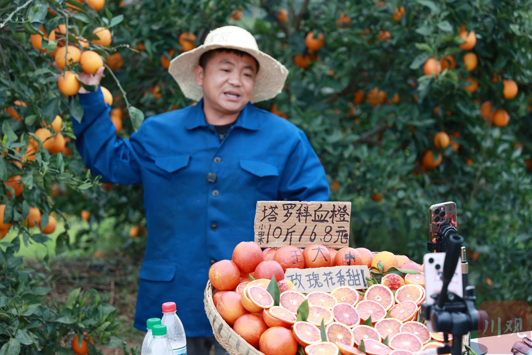 “血橙和耙耙柑、沃柑不一样,光施够肥长个没用,得让它‘生血’。果肉里有血丝,果香里有清甜,色香味俱全,才是资中血橙的魂。”冯定良对品质的较真,让他的果子成了市场的“香饽饽”,周边果农的血橙一斤卖1.2元,他的内销价能到2.5元,而出口价更是能达到3元一斤。