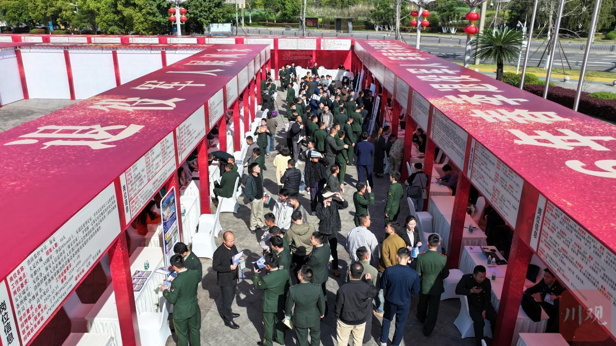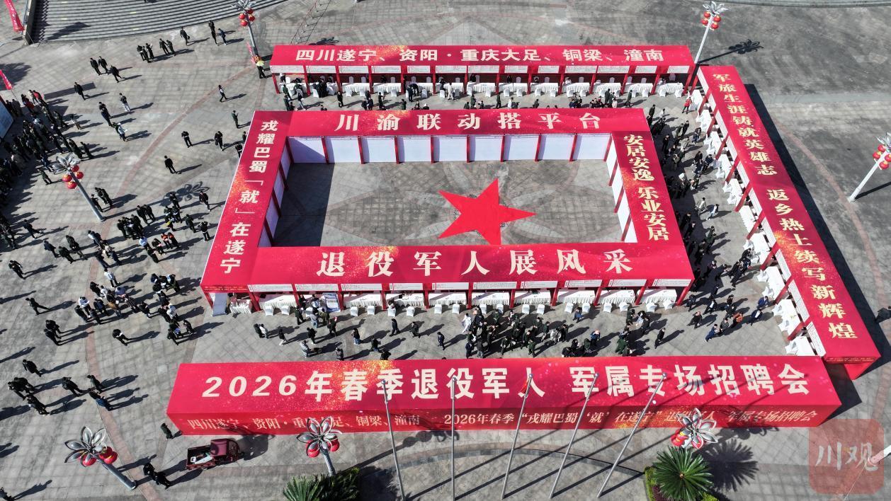 3月26日,以“戎耀巴蜀 ‘就’在遂宁”为主题的2026年春季退役军人、军属专场招聘会在遂宁市安居区举行,吸引来自四川遂宁、资阳,重庆大足、铜梁、潼南等五地的500余名退役军人及军属现场求职。