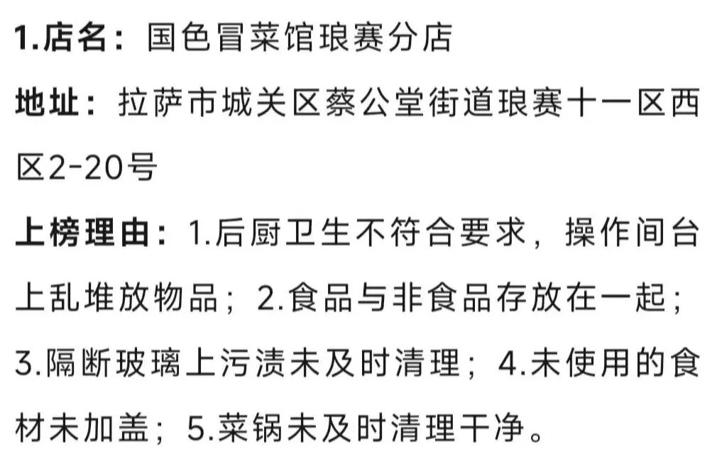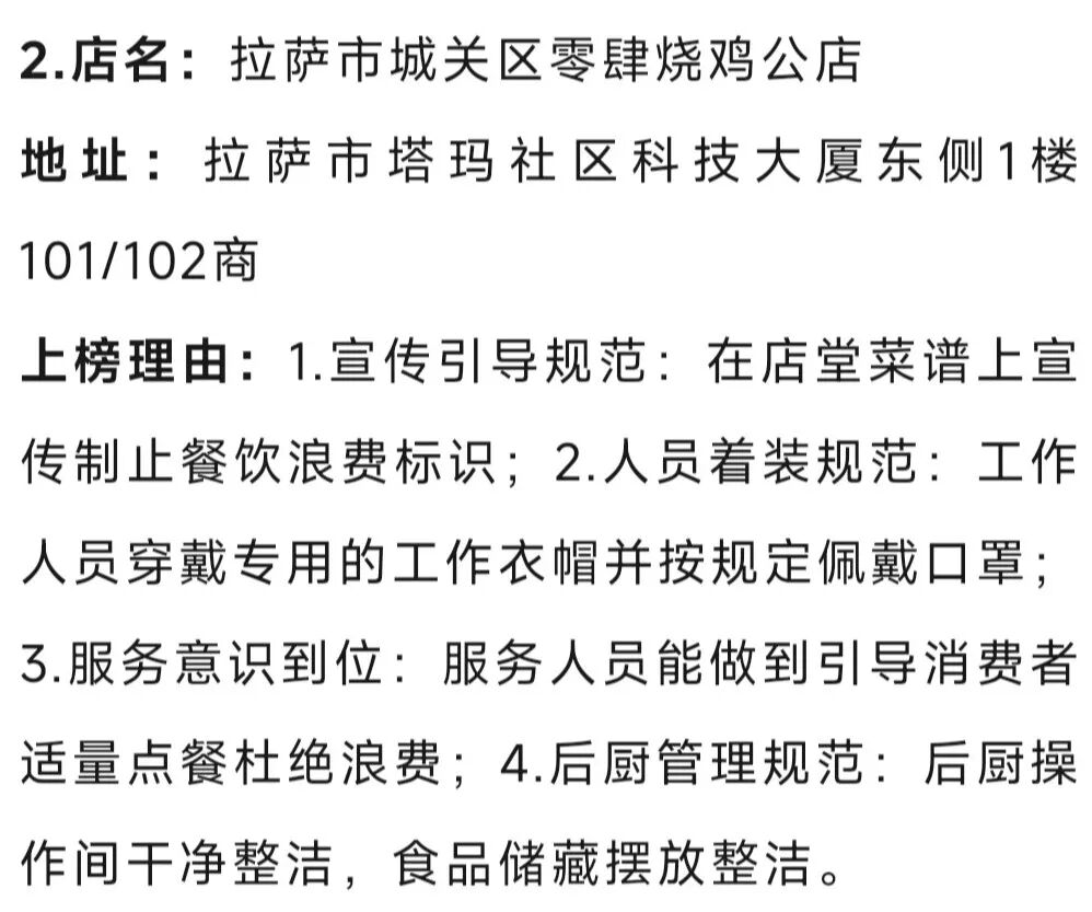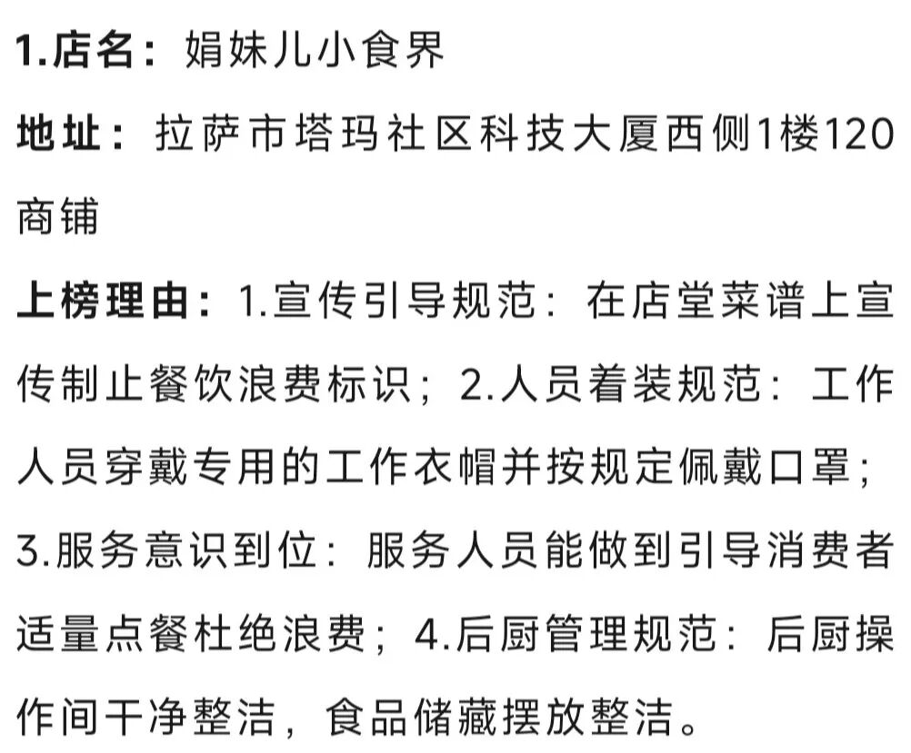 为深入贯彻落实《中华人民共和国反食品浪费法》《中华人民共和国食品安全法》《餐饮服务食品安全操作规范》等相关要求,优质高效推进全国文明城市创建工作,保障人民群众“舌尖上的安全”。3月份,拉萨市市场监督管理局开展网络餐饮食品安全专项整治工作。现向社会公布专项行动中发现的正反面典型,请广大消费者予以监督。