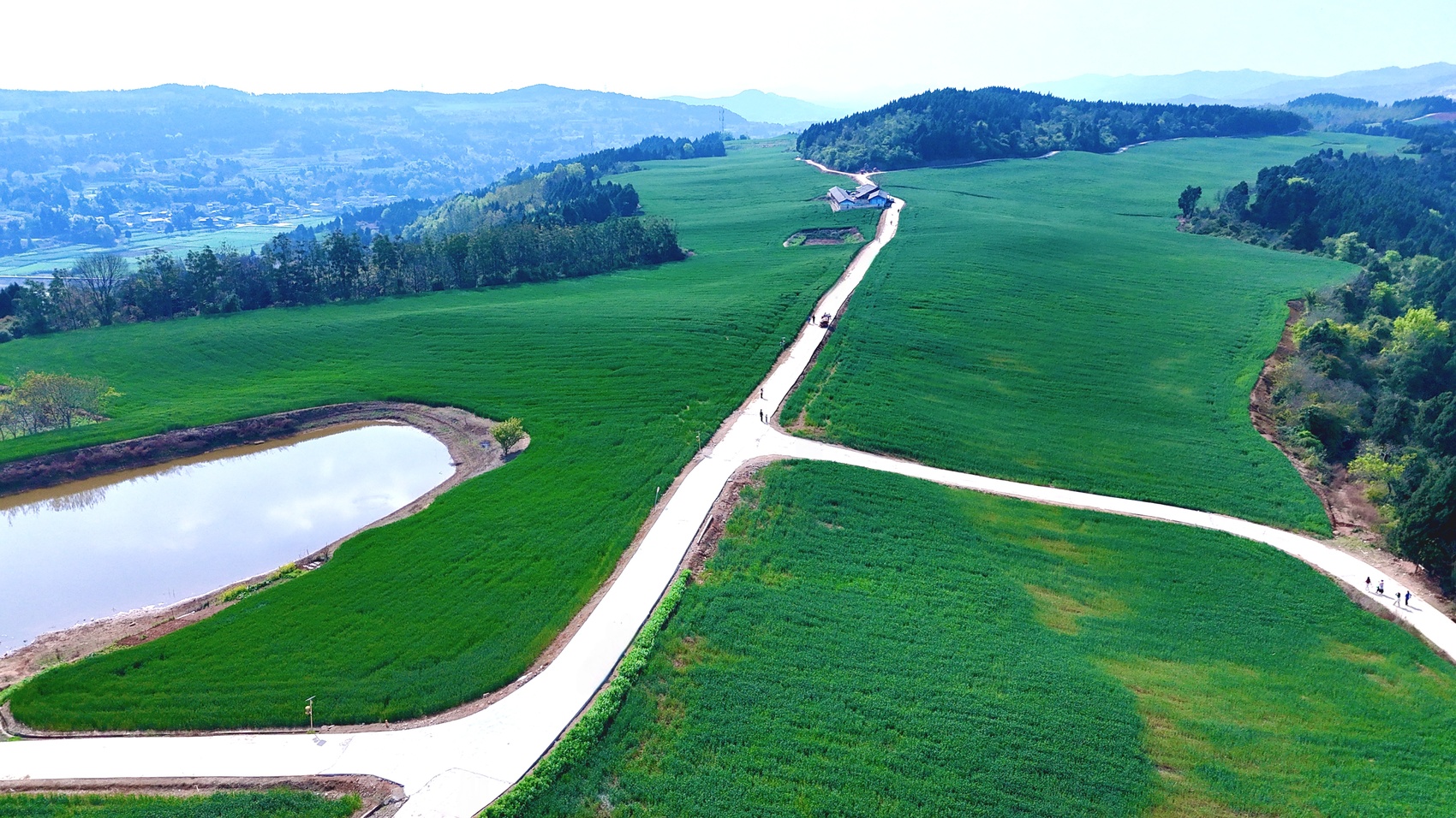 仙鹤镇帽儿山成片的小麦。