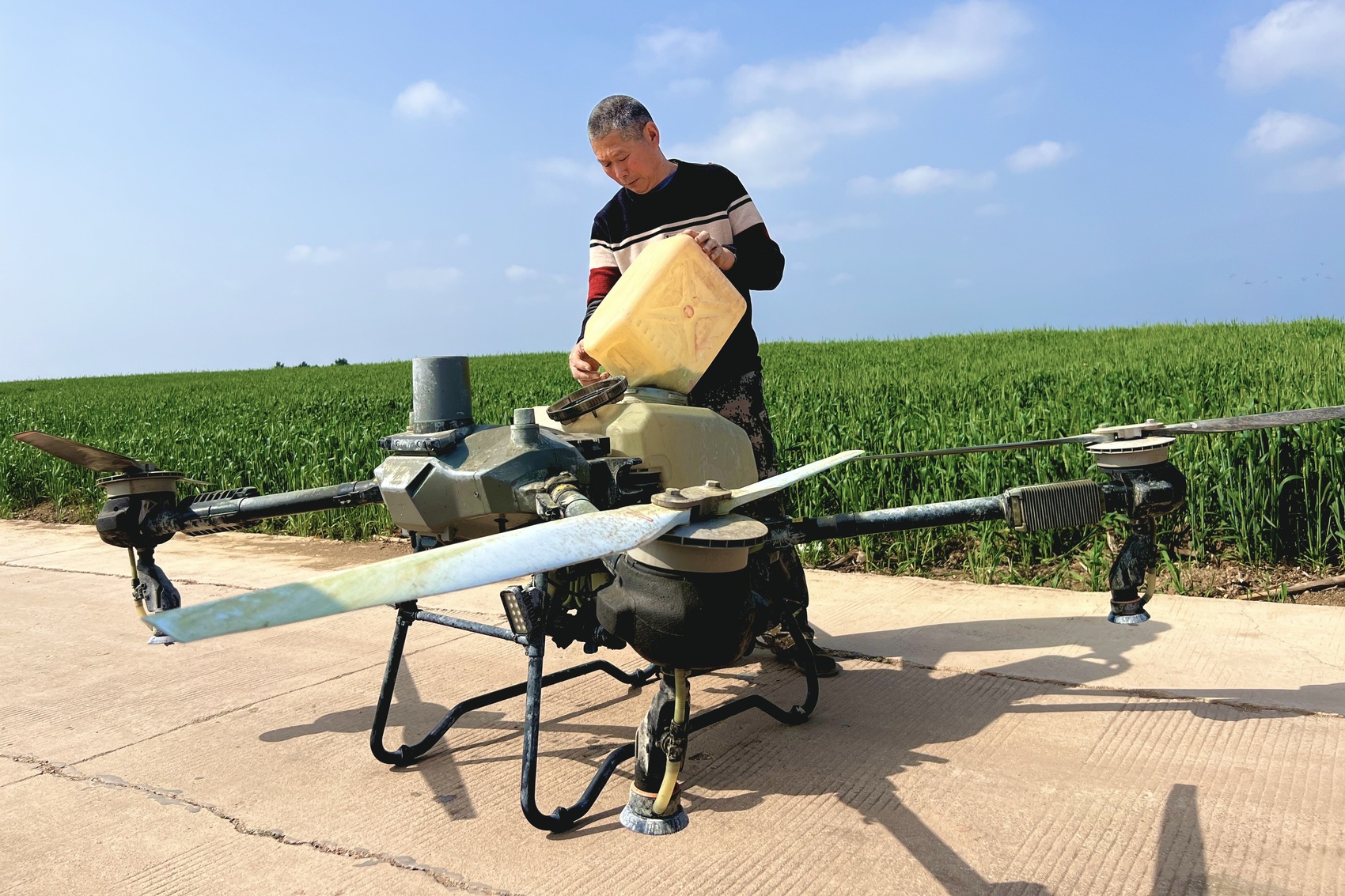 “我们今年种了2000亩小麦,以前全靠人工背着药桶打药,不仅费工费时、效率低,还容易喷洒不均匀,导致防治效果不理想。”当地小麦种植大户李永说,“现在,1台无人机1小时能完成100亩小麦的作业,速度快、覆盖面广,用药更精准,大大减轻了劳动强度,也降低了生产成本。这让我们对今年夏粮丰产丰收也更有信心。”