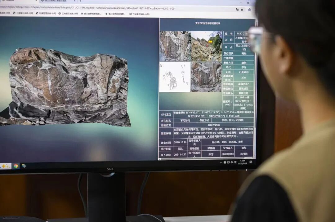 2002年,银川市贺兰山岩画管理处成立。2020年,管理处实施“贺兰山岩画区域测绘与本体数字化留存”项目,这是宁夏岩画数字化保护的首次实践。截至2025年底,贺兰山岩画核心区12平方公里保护范围内的6个区域中,已有5个区域完成了数字化录入。正在实施的贺兰山岩画保护前期勘察研究项目,已采集三维模型1716组、彩色正射影像1716组、线画图200组、电子拓片图200组,这些数据为岩画保护提供了科学依据。