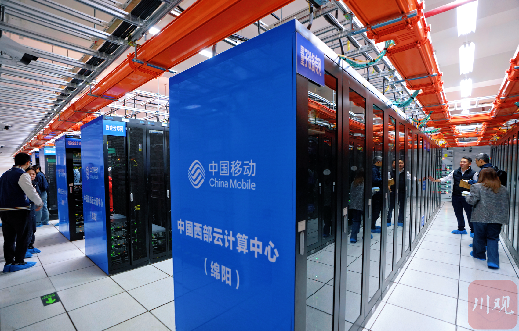 位于中国移动中国西部云计算中心(绵阳)的机房里的“量子设备专列”机柜。郭超英 摄