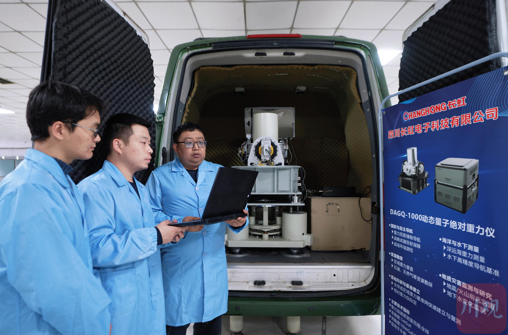 3月11日下午,在四川长虹电子科技有限公司(下称长虹电子科技)的厂房里,一辆轻型客车旁边,几名身穿白大褂的研发人员正在调试设备。借助车载的量子重力仪,工作人员可以快捷精准地测出所在地重力值。而重力作为6个基本地理参数之一,是低空经济、自动驾驶等很多创新应用的信息“地基”。