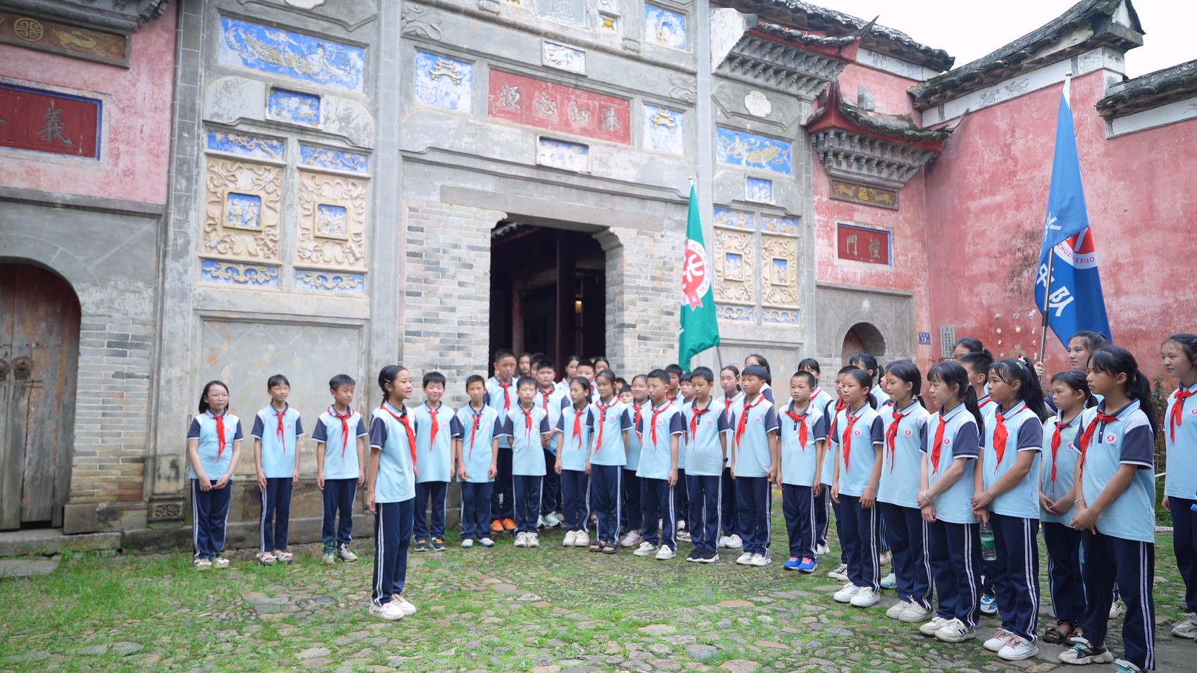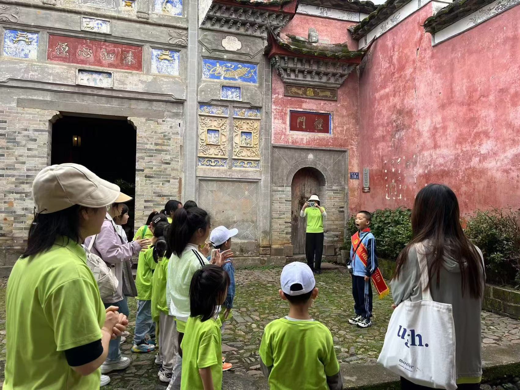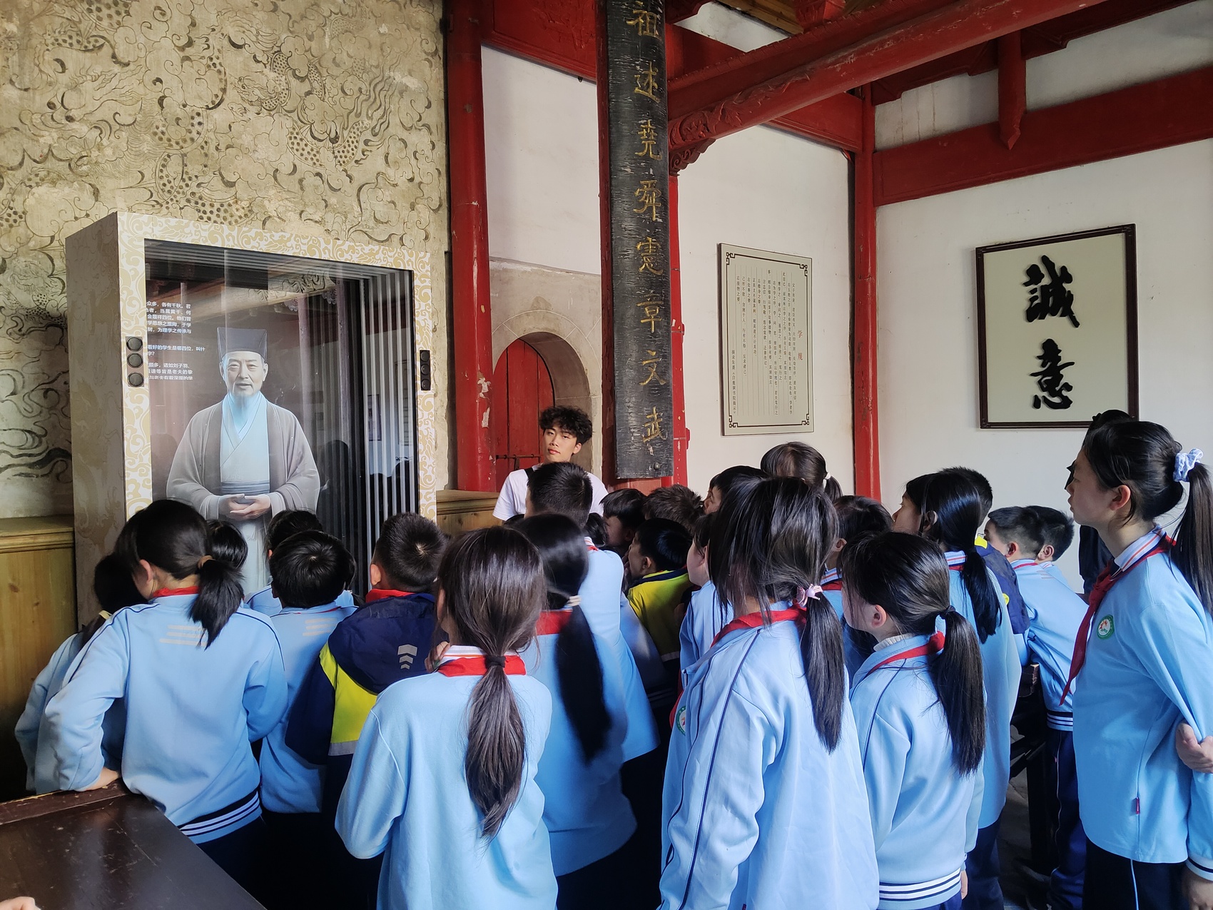 “朱子文化小小讲解员”在兴贤书院外为研学学生作讲解。朱子学校供图
