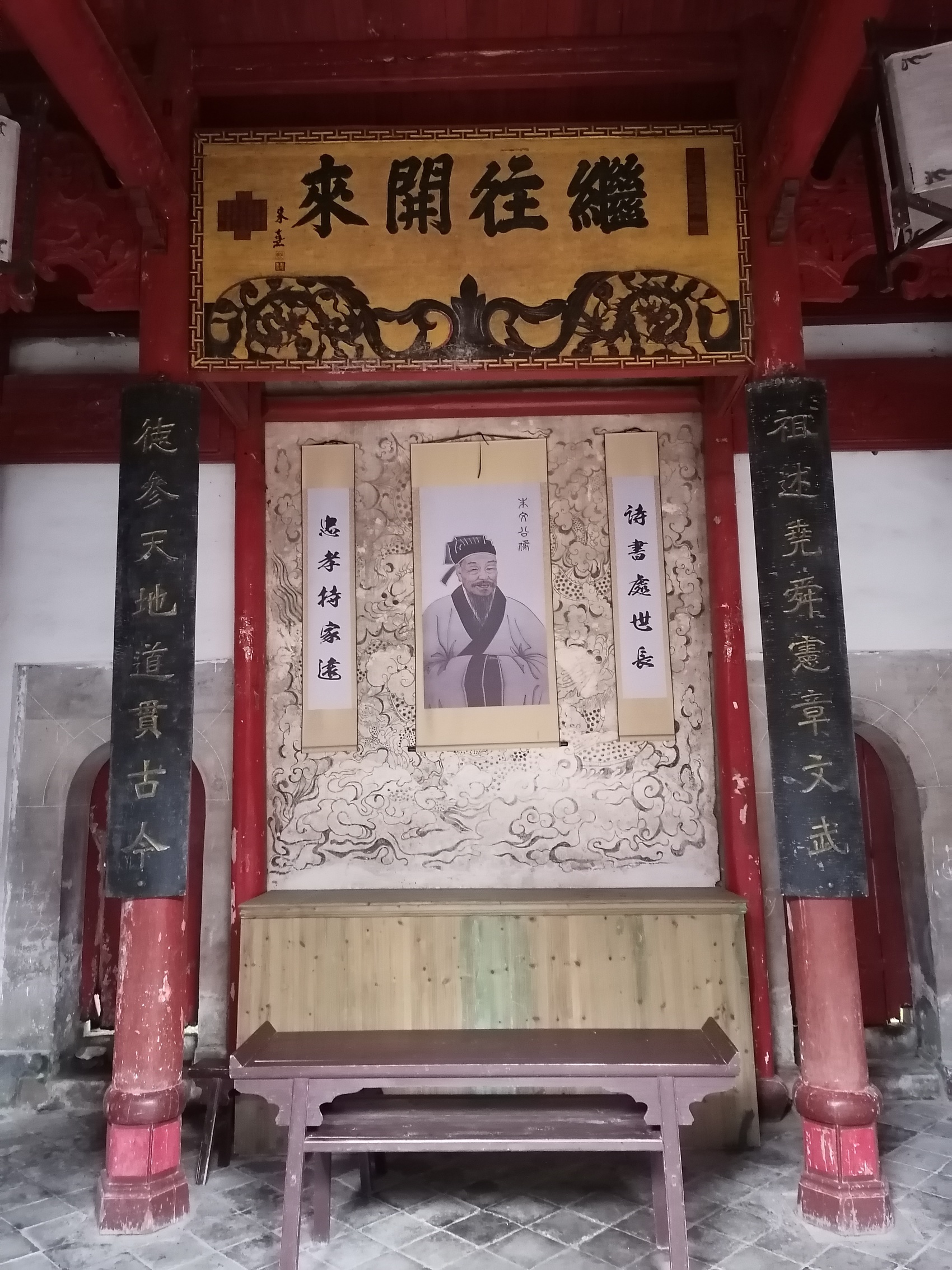 兴贤书院正堂大厅内“继往开来”匾额及朱子画像。杨林川 摄