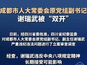 成都市人大常委会原党组副书记、副主任谢瑞武被“双开”