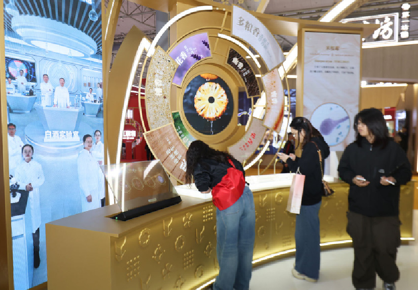 在“匠心工艺”展区,十二生肖产品墙以动态灯箱形式呈现,消费者轻触屏幕,即可逐一点选查看每一款生肖酒的背后故事,既彰显品牌宏大的产品实力,也传递出对传统文化的当代转译。