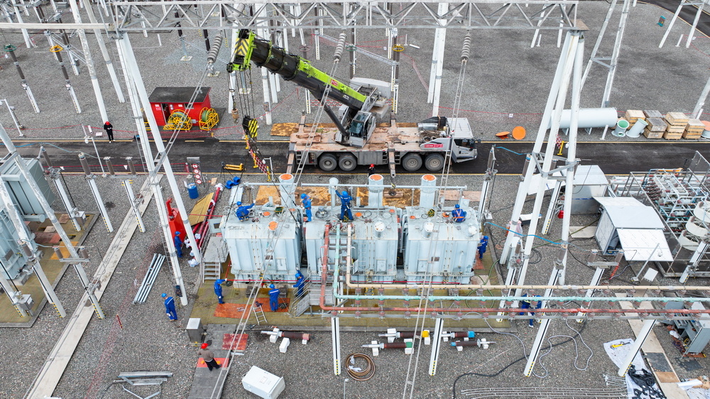 检修现场,作业人员兵分两组,一组手持专业扳手,逐一拧松主变吊罩上的固定螺栓;另一组则攀登上主变本体,拆除各类连接件。随后,大型吊车吊臂缓缓升起,重达数吨的主变钟罩被平稳吊离本体,露出内部缠绕紧密的线圈与铁芯。