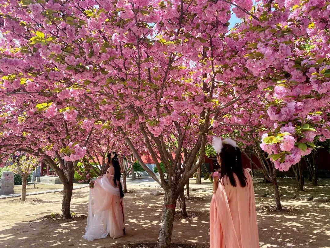 粉云似海,落英成阵,灿若云霞的花瓣层层叠叠,把千年古刹的厚重与春日的雅致揉在了一起。