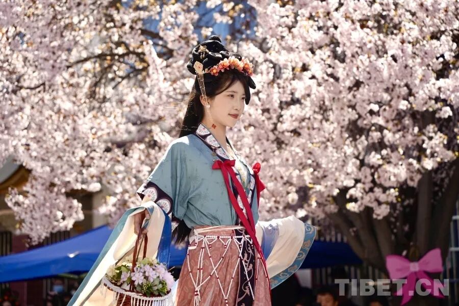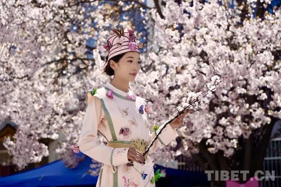 服饰文化是西藏传统文化的重要组成部分,基本特征为肥腰、长袖、大襟、右衽、长裙、长靴,并配有精美的金银珠玉饰品。受自然环境、民风民俗及生产方式影响,西藏服饰文化形成了鲜明的地域特色——拉萨服饰典雅庄重,日喀则服饰绚烂夺目,阿里服饰尽显华贵风范……传统服饰与桃花交相辉映,为观众呈现了一场流光溢彩的视觉盛宴。(中国西藏网 记者/德吉卓玛)