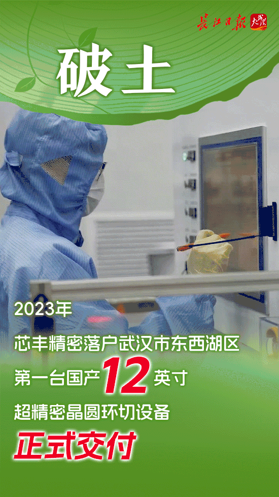 2023年,芯丰精密落户武汉市东西湖区。这年的最后一天,第一台国产12英寸超精密晶圆环切设备正式交付。它能将晶圆边缘修整到头发丝直径的十分之一,精度超越海外同类产品。