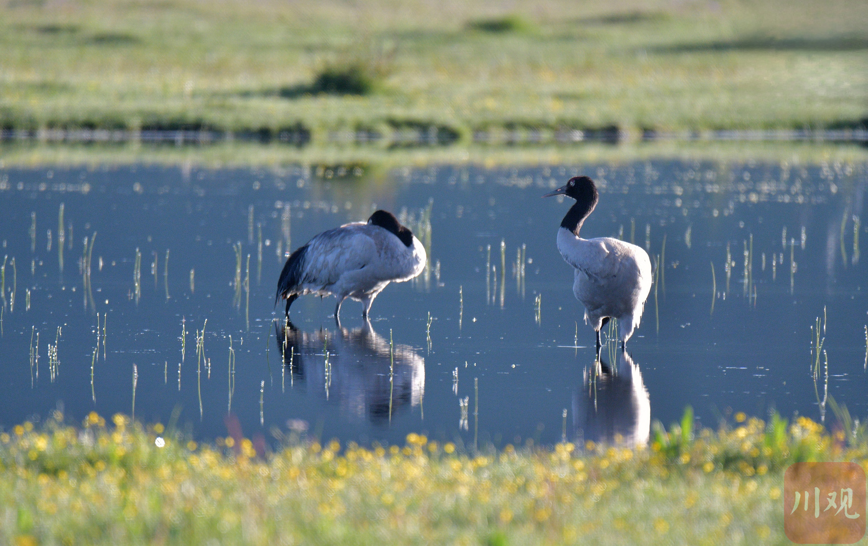 黑颈鹤在红原大草原上栖息生存。红原县融媒体中心供图