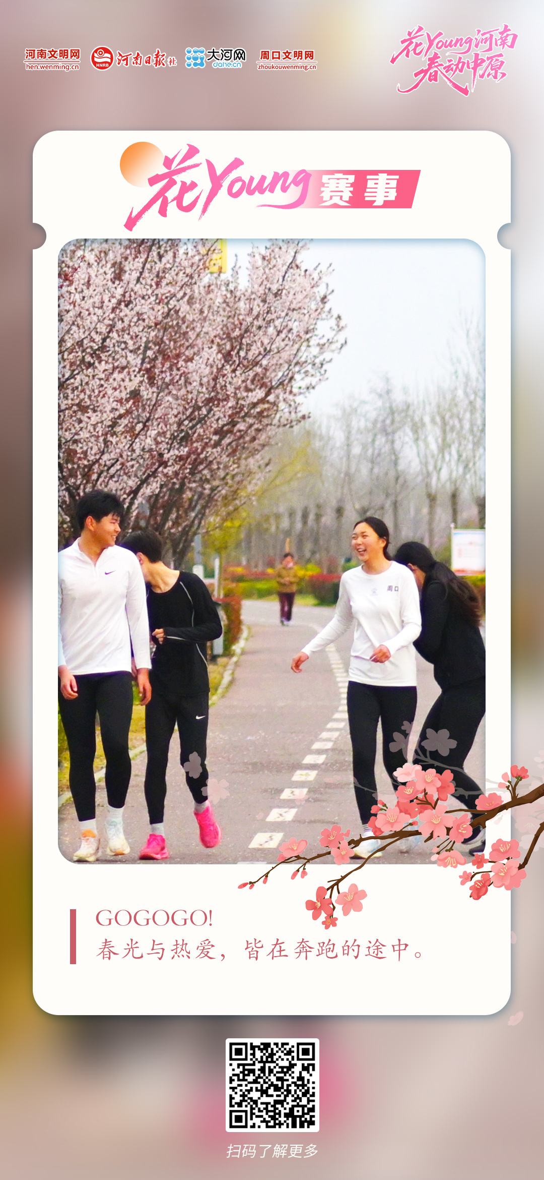赛道上追着风、迎着光,青春的身影与绚烂花海同频奔跑;